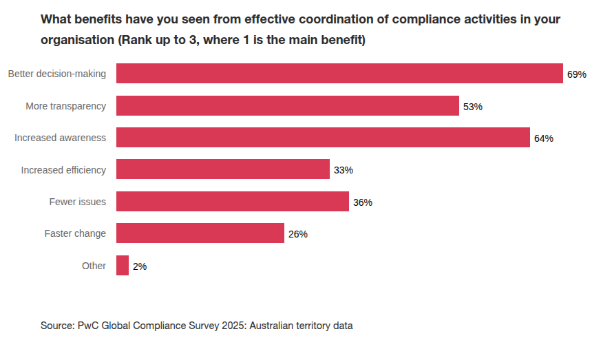 Research has shown, that a well coordinated, ‘connected compliance’ strategy enables better decision making and positively influences various other business aspects.