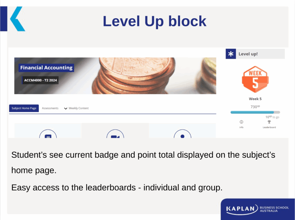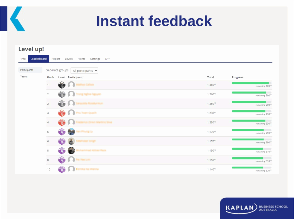 “Level Up tool enables Kaplan Business School (KBS) to implement key elements of gamification, such as points, badges, and leaderboards (PBLs), in a user-friendly way,” says Cameron Hallowell, Content and Learning Systems Manager at KBS.