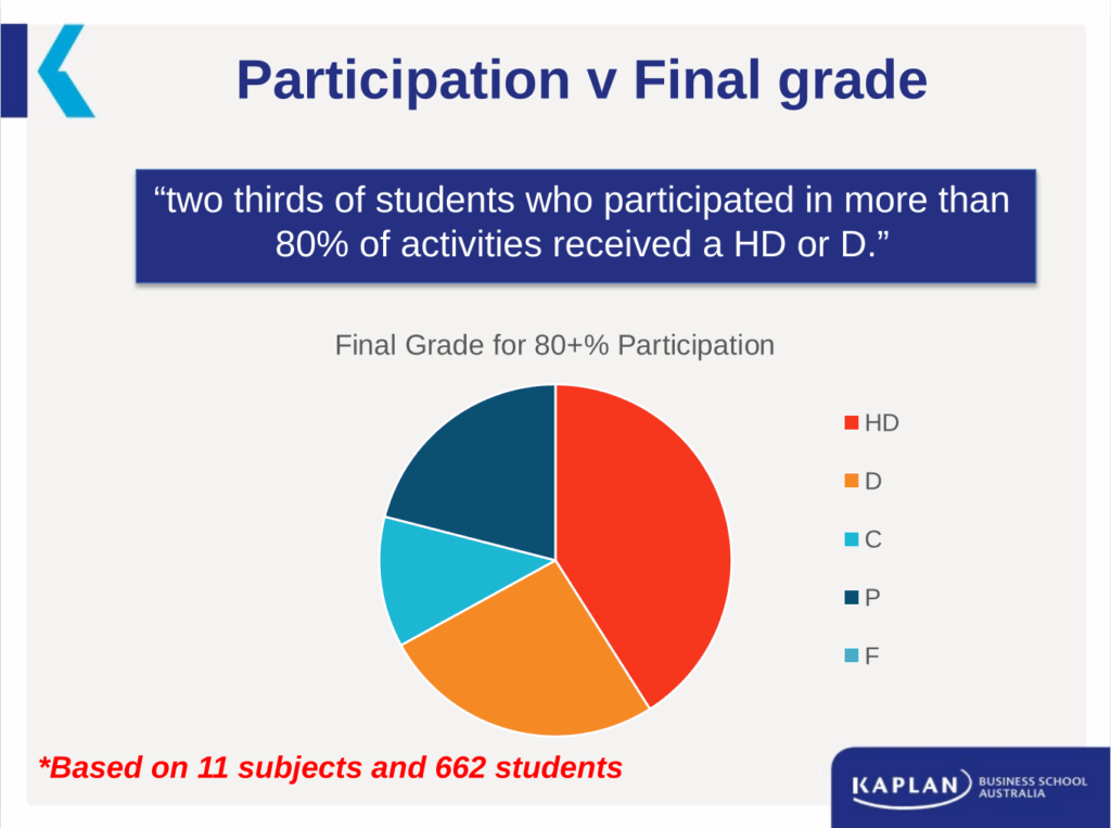 - “Two thirds of students who participated in more than 80% of activities received a high distinction or distinction as a result.”